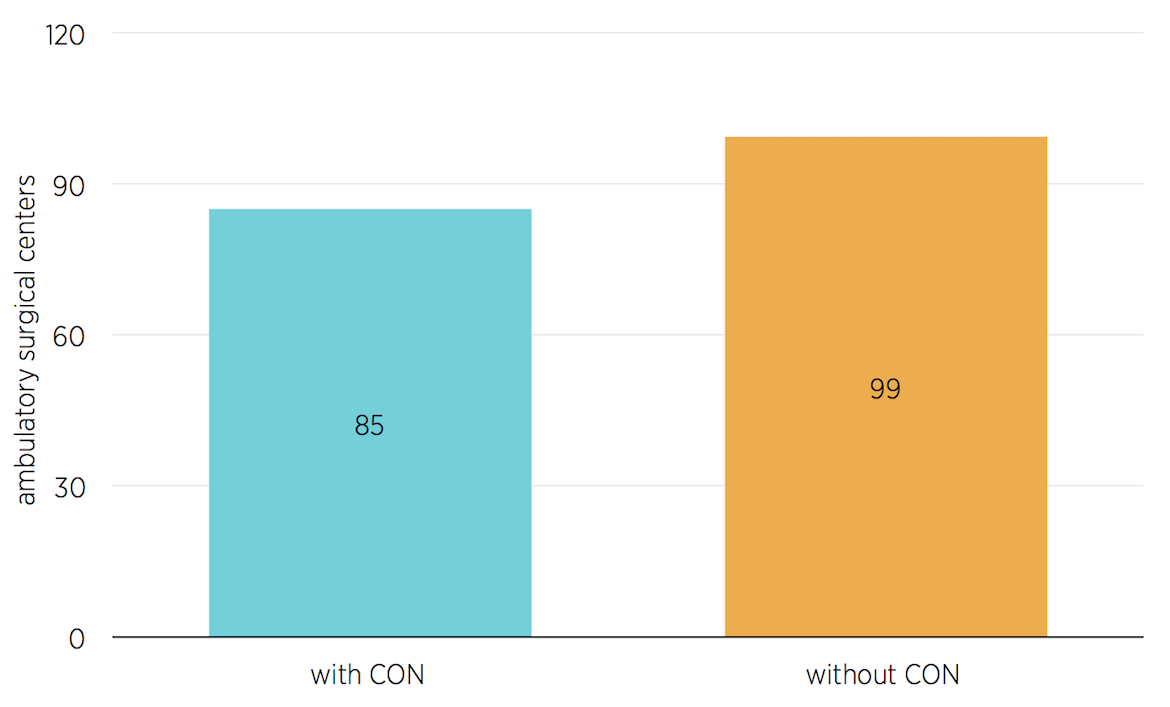 In reality, however, CON laws are associated with fewer overall hospitals and ASCs, as well as fewer rural hospitals and ASCs.