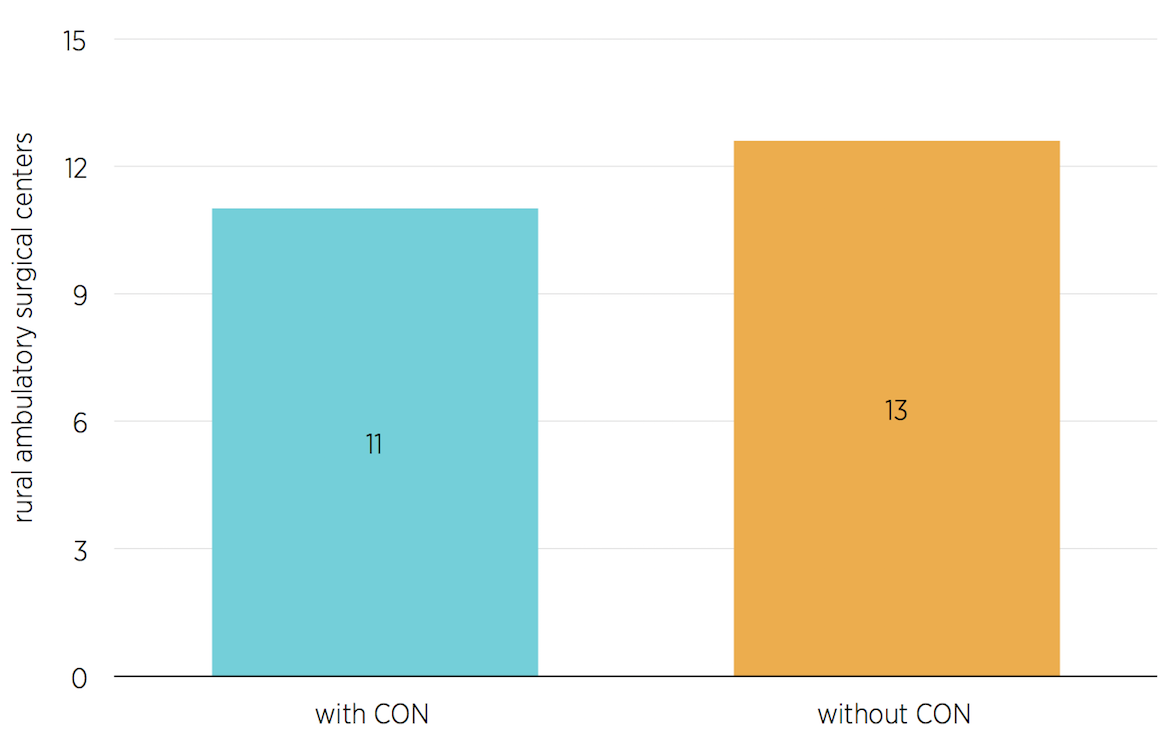 Source: Authors’ calculations based on findings in Thomas Stratmann and Christopher Koopman, “Entry Regulation and Rural Health Care: Certificate-of-Need Laws, Ambulatory Surgical Centers, and Community Hospitals” (Mercatus Working Paper, Mercatus Center at George Mason University, Arlington, VA, February 2016).
