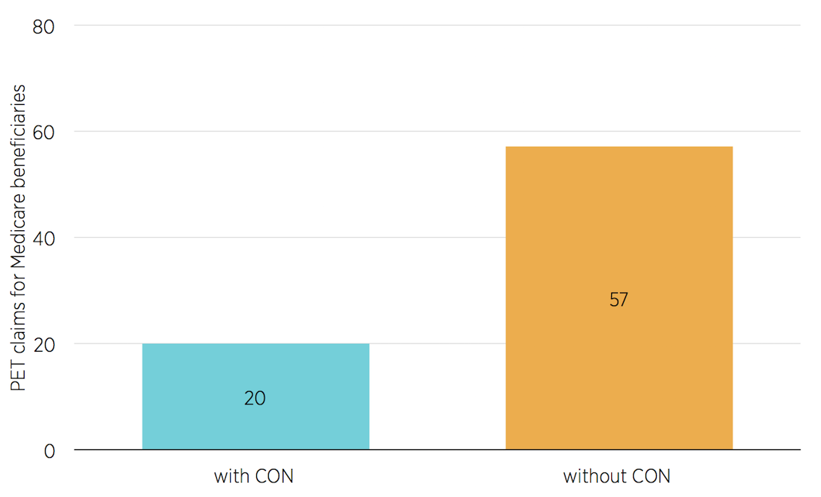 Source: Authors’ calculations based on findings in Thomas Stratmann and Matthew C. Baker, “Are Certificate-of-Need Laws Barriers to Entry? How they Affect Access to MRI, CT, and PET Scans” (Mercatus Working Paper, Mercatus Center at George Mason University, Arlington, VA, January 2016).