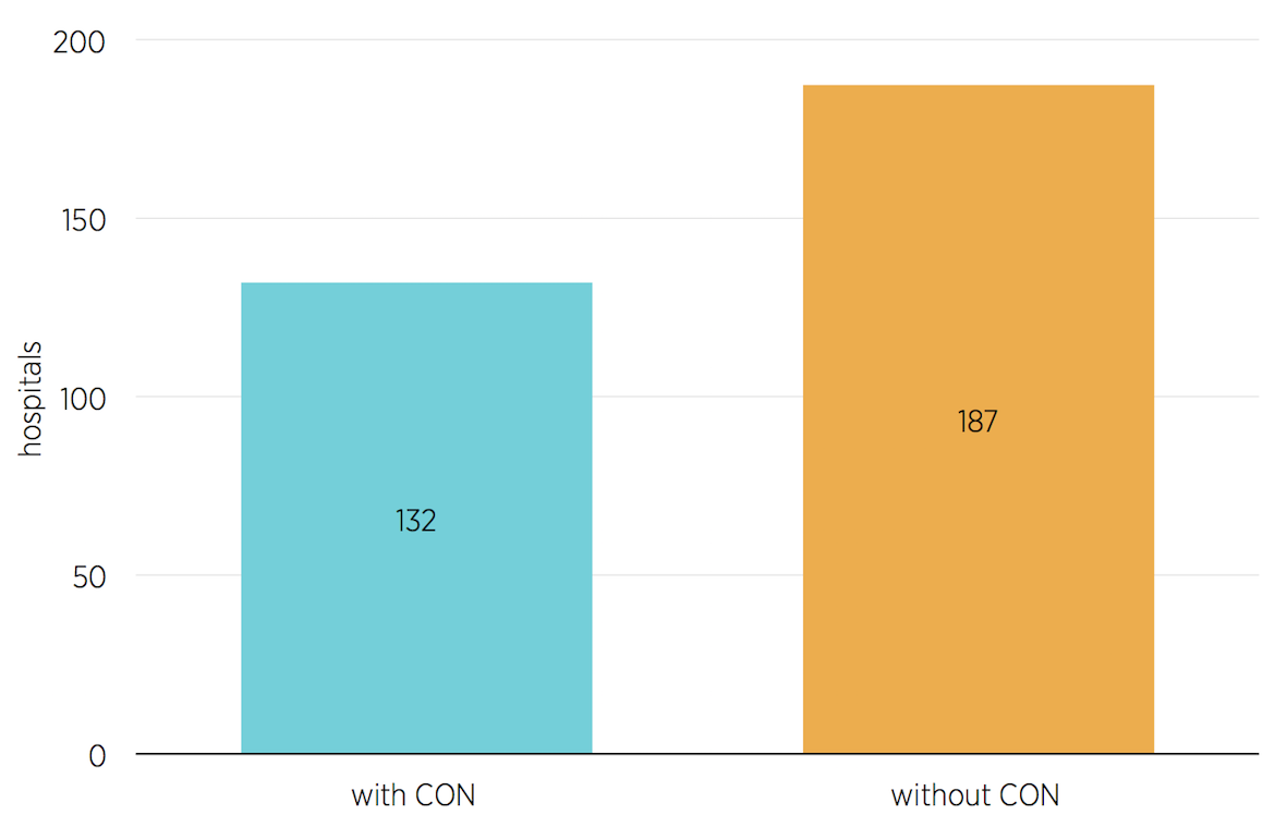 Source: Authors’ calculations based on findings in Stratmann and Baker, “Are Certificate-of-Need Laws Barriers to Entry?”