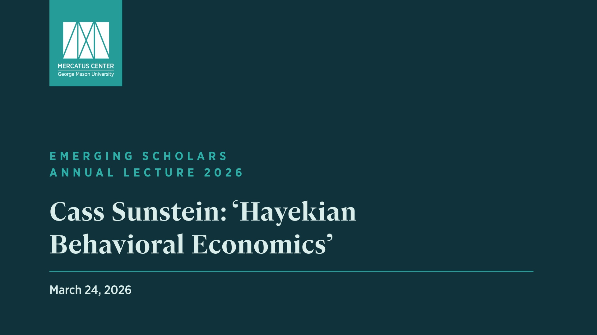 Cass Sunstein joined the Mercatus Center for the inaugural Emerging Scholars Lecture to explore the intersection of Hayekian economics and behavioral science. His talk examined how knowledge, choice, and human biases shape decision-making—and what that means for public policy. Drawing on both Hayek's insights about dispersed knowledge and modern behavioral economics, Sunstein outlined a "neo-Hayekian" approach that emphasizes learning from informed, unbiased choices while remaining cautious of centralized planning. The lecture highlighted how market processes, individual behavior, and policy design can work together to reduce preventable harm and better support individual welfare and freedom.