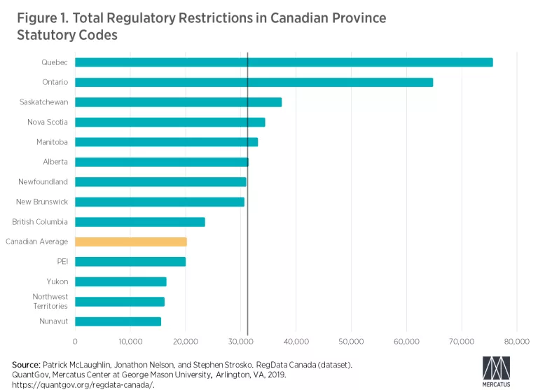 In September 2019, the Mercatus Center completed an updated edition of the Canadian restrictions. In addition to quantifying restrictions found in the regulatory code, the 2019 edition of the project also includes restrictions found in statutes at both the federal and provincial levels. Statutes (sometimes called “acts”) are laws passed by Parliament, while regulations are the rules that address more detailed application of the law. The federal data (both statutes and regulations) spans from 2006-2019, and the provincial data on regulations spans from 2018-2019. The provincial data on statutes only available for 2019.
