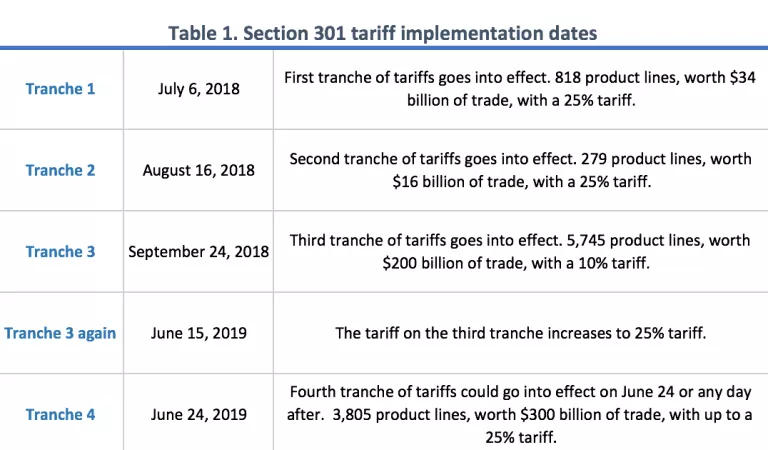 Table 1. Section 301 tariff implementation dates