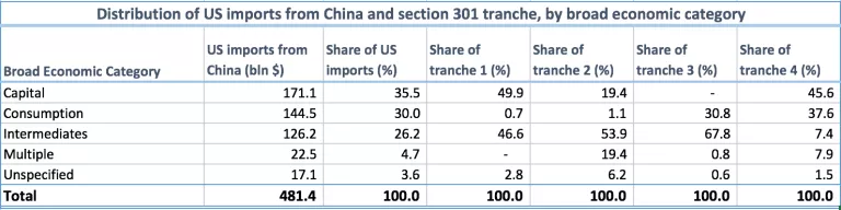 Table 3. US imports from China, and Section 301 tariff tranches, by broad economic category