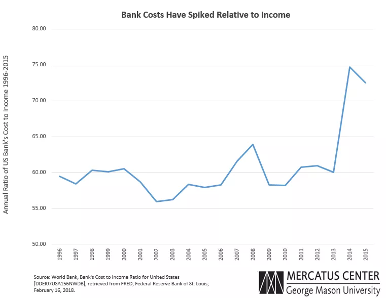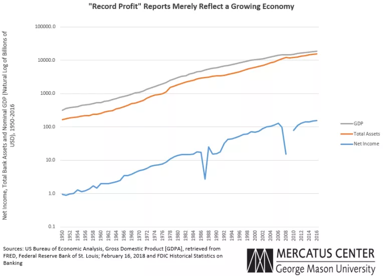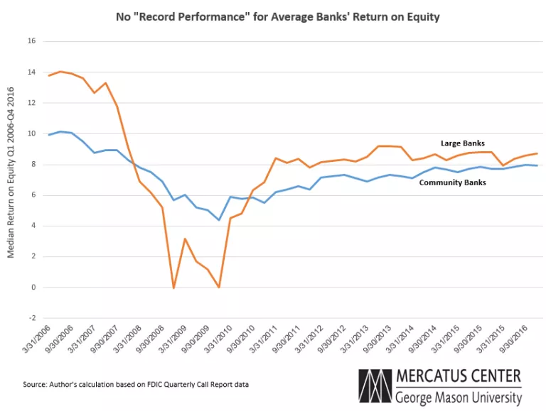 The logic behind the “record profit” fallacy holds that because the banking industry as a whole has generated greater net income than ever before, post-crisis regulatory burdens cannot be causing too many problems.