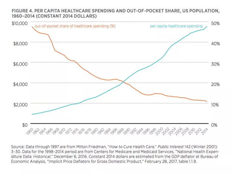 As recently as 1960, just under half of health spending was controlled directly by patients. Because the costs paid by insurers were mostly related to hospitalization; That meant many families that needed only primary care went for years without ever processing a claim through a health insurer. Nevertheless, they had access to doctors.