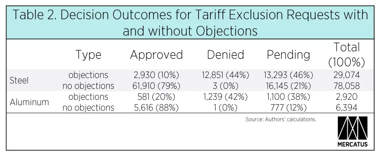 In other words, steel or aluminum tariff exclusion requests with objections, especially multiple objections, have a slim chance of getting approved, while those with no objections have a relatively good chance of approval.