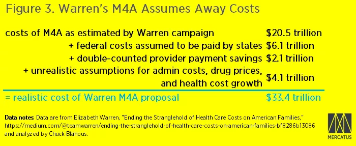 The Warren campaign memorandum provides a cost estimate of $20.5 trillion over ten years, much lower than the accepted analytical consensus which includes my estimate as well as others from the Urban Institute, the Center for Health and Economy, the Rand Corporation and Ken Thorpe. In short, the Warren proposal simply assumes away more than one-third of the cost of M4A.