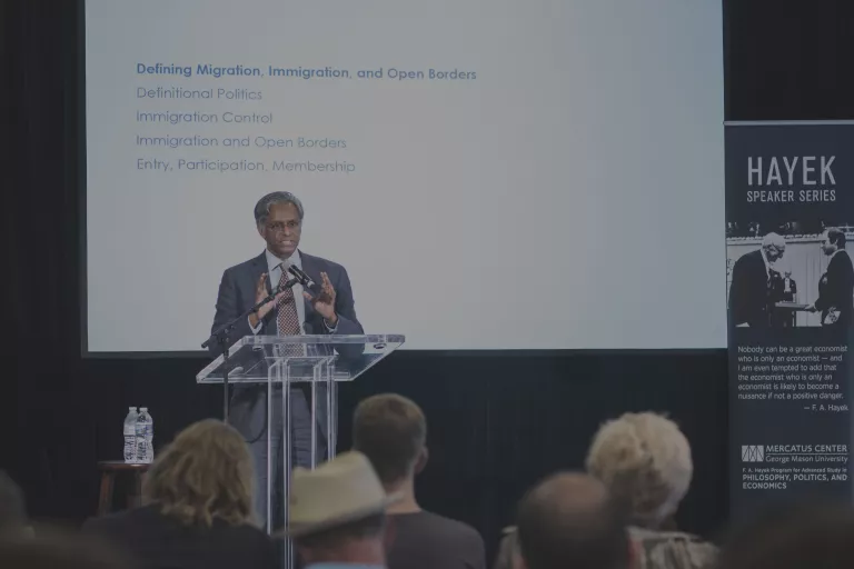 Chandran Kukathas: Thank you very much, firstly, Virgil, for that kind introduction, and to the Center for bringing me here and hosting me. I’m delighted to see so many people here. Let’s get down to business. The title of my talk is “Immigration and Freedom,” so maybe I should begin by saying what the take-home message is. One often hears an argument in favor of restricting or controlling or limiting immigration, which says something like, “It’s important to protect our values. We need to control immigration in order to protect the values that are important to a modern liberal democratic society in particular.” And I want to say, yes, that is the issue—it’s protecting our most important values. And I think the most important of these values are freedom and, to that extent, also equality because without some kind of equality, freedom is just a privilege. So we want freedom for everyone. That’s what a liberal democratic society means.