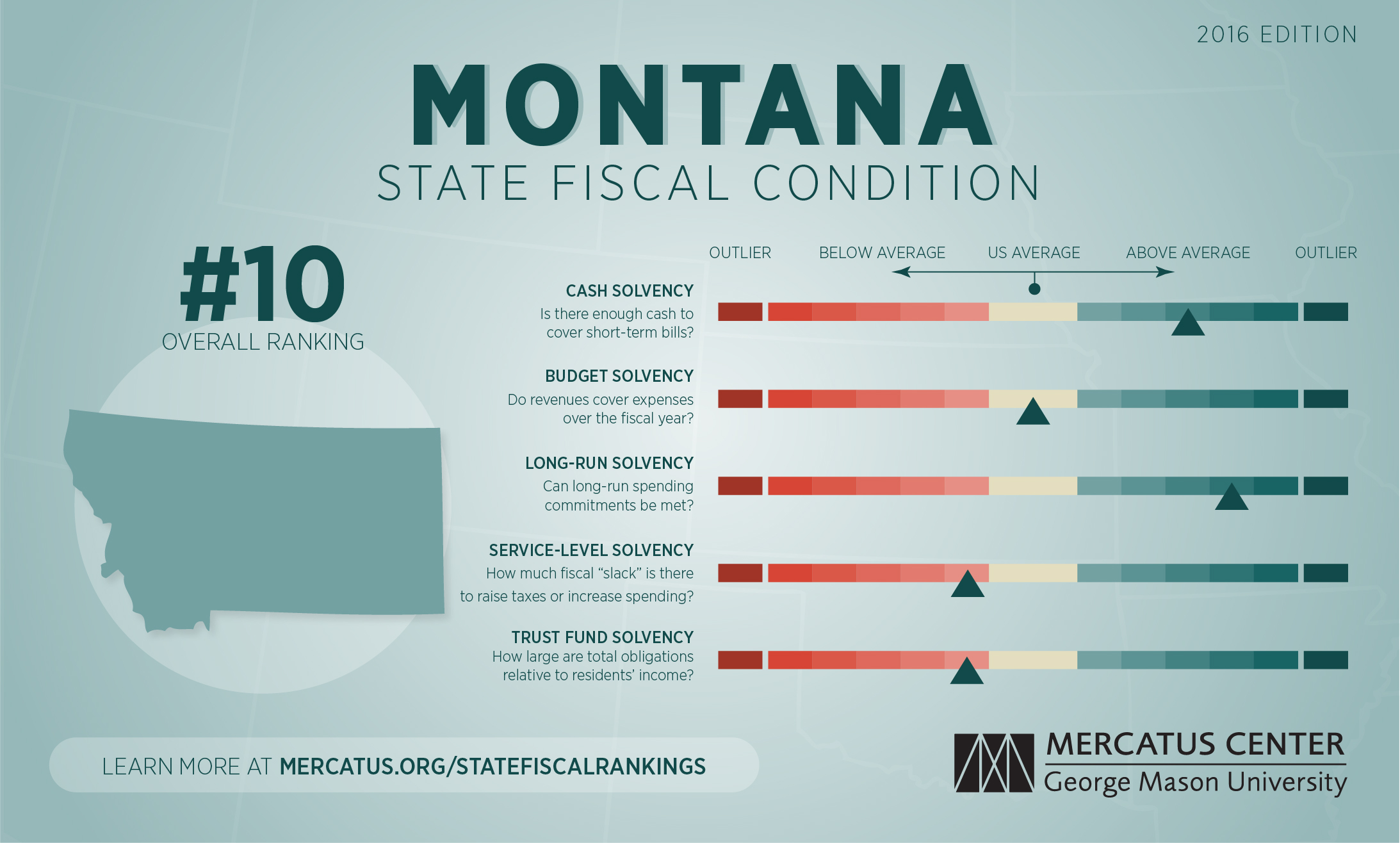 For a complete explanation of the methodology used to calculate Montana's fiscal health rankings, download the full paper and the dataset at mercatus.org/statefiscalrankings-2016-edition.