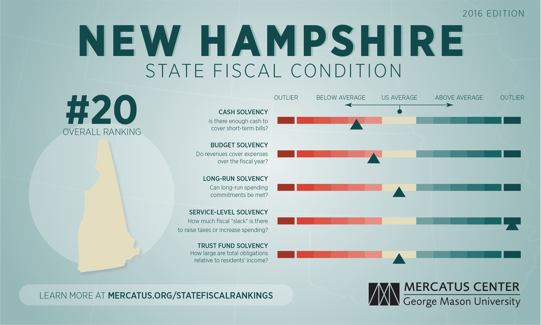 For a complete explanation of the methodology used to calculate New Hampshire's fiscal health rankings, download the full paper and the dataset at mercatus.org/statefiscalrankings-2016-edition.