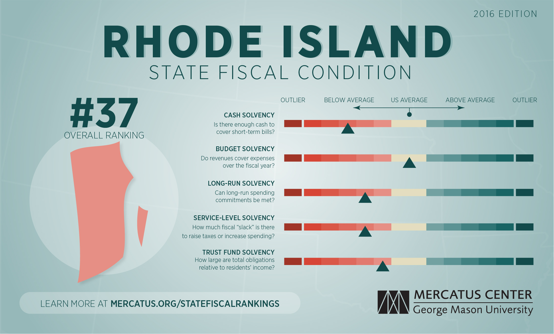 For a complete explanation of the methodology used to calculate Rhode Island's fiscal health rankings, download the full paper and the dataset at mercatus.org/statefiscalrankings-2016-edition.