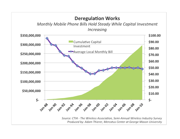 Deregulation Works: Monthly Mobile Phone Bills Hold Steady While Capital Investment Increasing