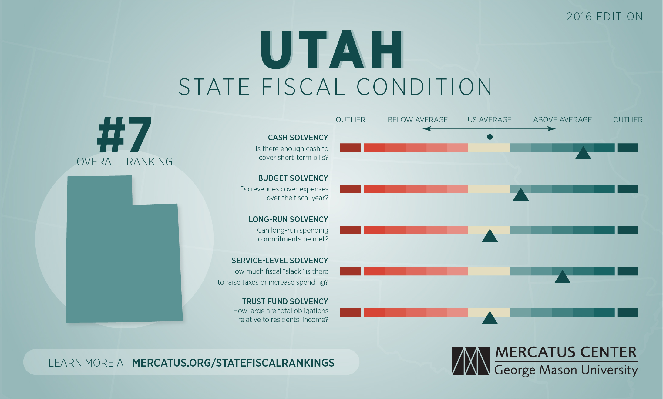 For a complete explanation of the methodology used to calculate Utah's fiscal health rankings, download the full paper and the dataset at mercatus.org/statefiscalrankings-2016-edition.