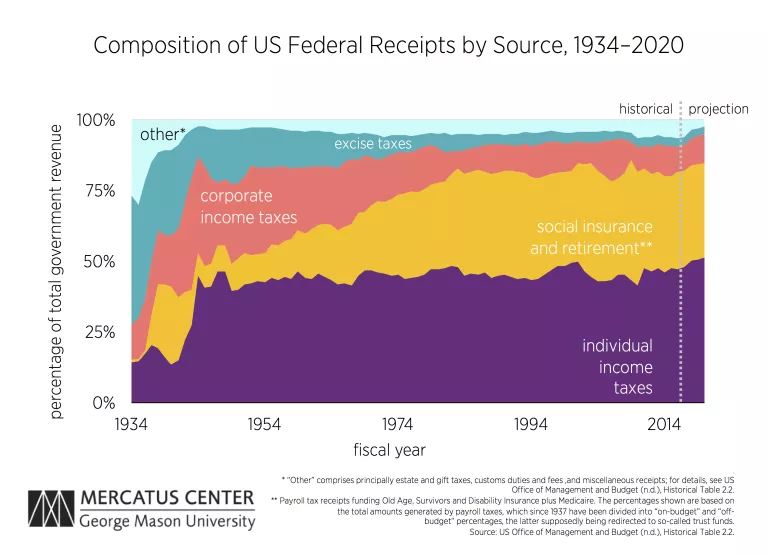 - While excise taxes were initially the federal government’s primary source of revenue, today they account for only about 3 prevent of federal revenues.