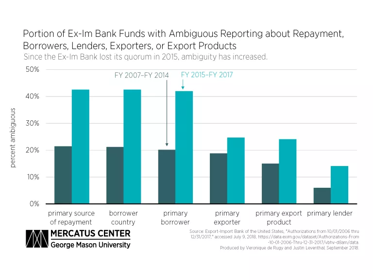 The Export-Import (Ex-Im) Bank lends, guarantees loans, or otherwise commits billions of US tax dollars every year for the purpose of aiding exporters. Good governance requires transparency and accountability about the disbursement of these funds. The Ex-Im Bank makes this difficult with widespread use of vague terms, leaving unanswered questions about which US exporters are being supported, which foreign borrowers are receiving benefits, what countries those foreign companies are based in, and how much aid goes to each state’s exports. The resulting lack of transparency makes it almost impossible to determine how well the Ex-Im Bank is achieving its expressed goals or stewarding taxpayer funds.