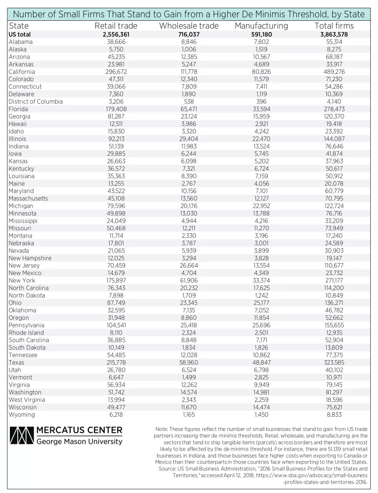 Higher De Minimis Thresholds in Canada and Mexico Would Bring Reciprocity for US Small Businesses