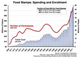 The data are from the Department of Agriculture, Department of Health and Human Services, Centers for Medicare and Medicaid Services, and the Congressional Budget Office.