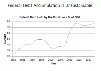 Under the alternative scenario that assumes such changes to current law, the CBO projects that deficits would shrink less significantly. Also, deficits would rise to $1.3 trillion by 2023 (as opposed to $978 billion in the current baseline) and yield cumulative deficits of $9.5 trillion (as opposed to $7.0 trillion). The debt picture would also get darker. Debt held by the public would reach 87 percent of GDP by the end of 2023 (as opposed to 77 percent).