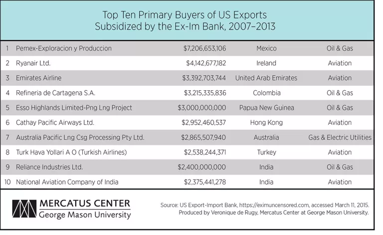 Top Foreign Buyers of US Exports Subsidized by the Export-Import Bank
