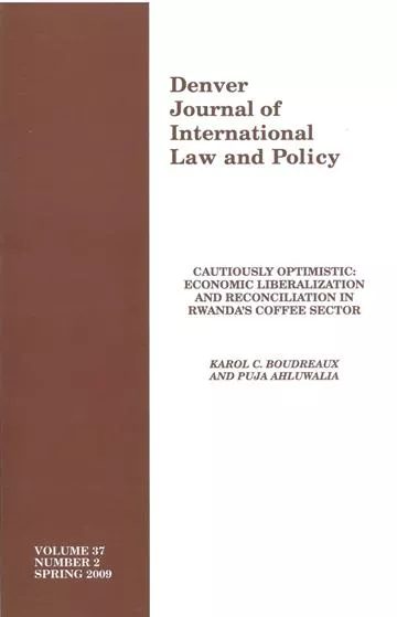 Boudreaux, Karol and Puja Ahluwalia, "Cautiously Optimistic: Economic Liberalization and Reconciliation in Rwanda’s Coffee Sector.” Denver Journal of International Law & Policy 37, no. 2 (Spring 2009): 147-200.