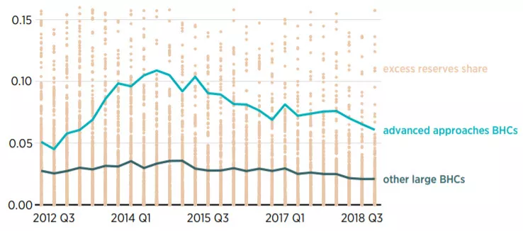 Figure 1. Average Ratio of Excess Reserves to Total Assets for US BHCs, Q2 2012–Q4 2018