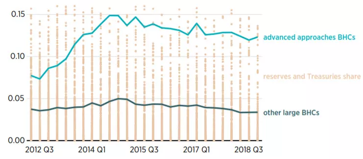 Figure 2. Average Ratio of Excess Reserves and Treasuries to Total Assets for US BHCs, Q2 2012–Q4 2018