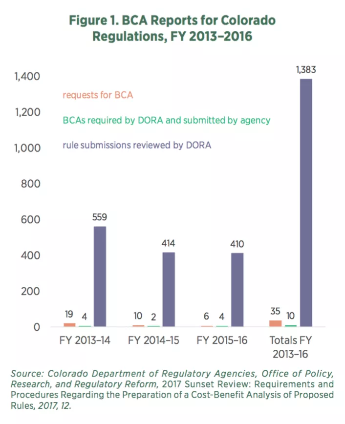 BCA in Colorado is in need of reform. Analysis is conducted for only a tiny fraction of rules, the rules for which it is conducted may not be those that are the most important, and the analysis generally comes too late to be useful anyway. Furthermore, analysis may not be objective, and the current third-party review process for rules and accompanying analysis is probably too weak to be effective.