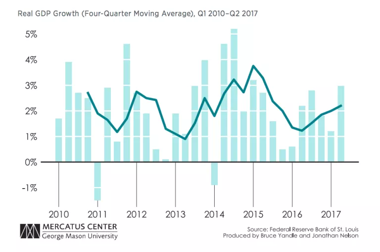 But what about the Fed? Will we see more interest rate increases and actions taken to unwind the Fed’s recession-swollen balance sheet? Yes and yes. The question, of course, is when and how fast. At the June and July meetings, the Federal Reserve Open Market Committee kept its powder dry, and pulled no triggers. In June the GDP implicit deflator, a closely watched inflation indicator, was sailing along at a 2 percent annual rate, the boundary that marks the beginning of Fed heartburn. Most folks in the guessing business thought inflation would continue an upward trek. But wouldn’t you know, the deflator turned south and is now pacing along at around 1.5 percent. The US-led fracking revolution and the expanding sharing economy are apparently still shifting supply curves to the right. Taken together, these two revolutions generate more production from the existing stock of capital assets, and that brings a much-desired nudge toward prosperity.