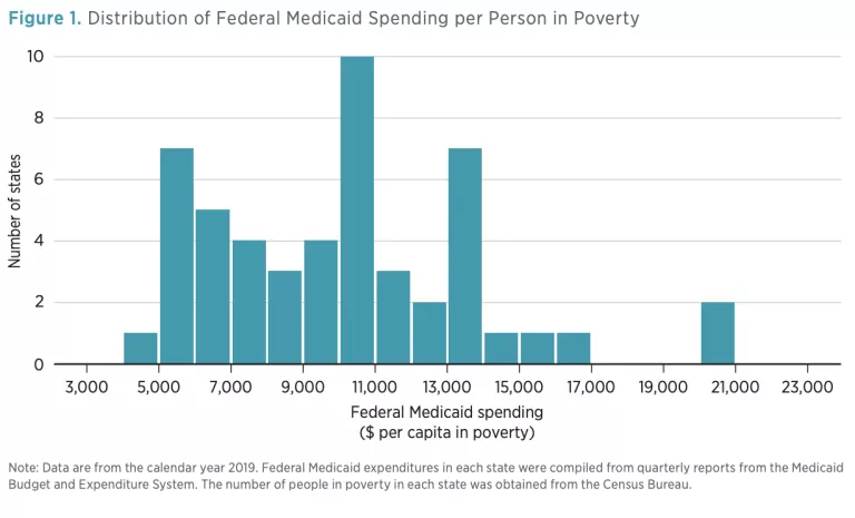 Instead of compensating for differences in state fiscal capacity, the allocation of federal Medicaid funds amplifies them, providing relatively wealthy states with far more resources per person in poverty than it provides to relatively needy states.