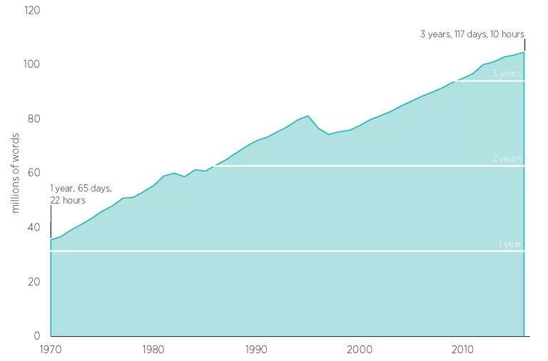 Figure 1. Number of Words and Length of Time to Read the CFR, 1970–2016