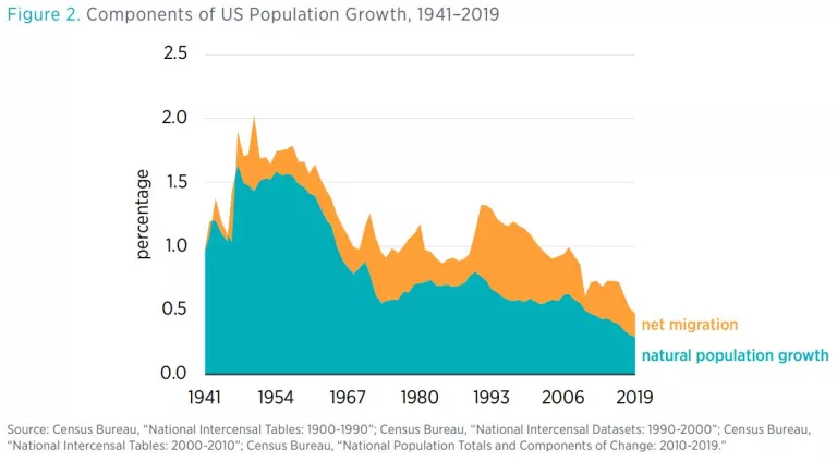 For all those reasons, the natural rate of population growth is unlikely to increase in the United States and is much more likely to continue its decline toward zero and then, within a few decades, into negative territory. The only variable of population growth that can stem the ongoing demographic decline in the United States is an increase in net migration.