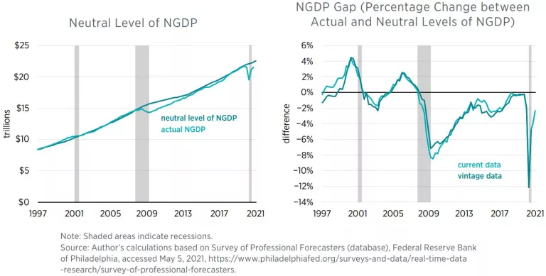 The rationale for this understanding is twofold. First, members of the public make many economic decisions, such as whether to take out a mortgage or a car loan, on the basis of forecasts of their nominal income. Similarly, firms may finance with debt and commit to multiyear contracts on plants, raw materials, and labor on the basis of forecasts of their nominal income. Second, actual nominal incomes may turn out to be very different from what are expected and, as a result, may be disruptive for households and firms that are not able to quickly adjust their economic plans. These disruptions can be avoided by maintaining total nominal income or NGDP on the growth path expected by the public. In other words, the Federal Reserve should aim to close the NGDP gap in order to keep monetary conditions neutral.