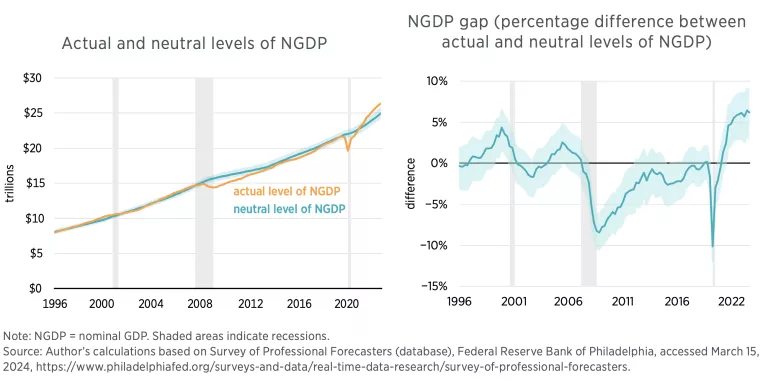 2. David Beckworth, “Measuring Macroeconomic Policy: The NGDP Gap,” Mercatus Center at George Mason University, Arlington VA, last updated March 15, 2024, https://www.mercatus.org/research/policy-briefs/measuring-macroeconomic….