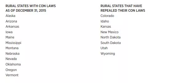 The earlier-mentioned Mercatus Center study focuses on the country’s 20 rural states, 12 of which currently have CON laws.