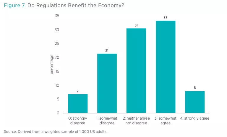 Similarly, when asked “Do regulations benefit the economy,” responses tended to skew toward agreement (see figure 7).
