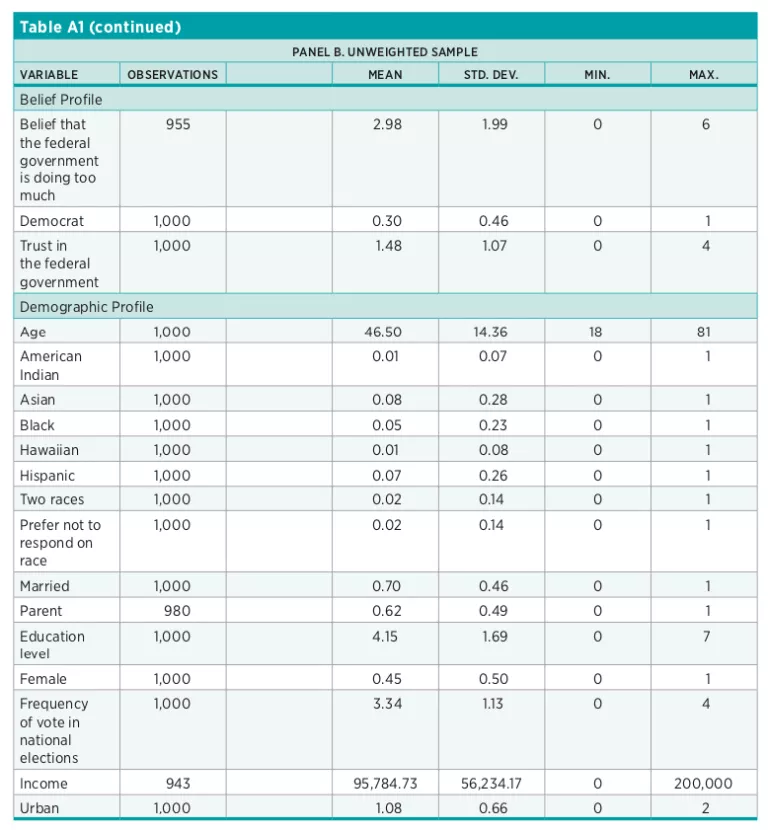 This finding is not necessarily inconsistent with the results of the first question. It is possible for the same individual to believe that markets should generally be free, while also feeling that—on the margin—the United States strikes the proper balance. This finding does, however, suggest that most Americans are not interested in enhancing economic freedom, a potential problem given the theoretical and empirical case for greater economic freedom.