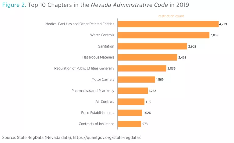 Researchers are only beginning to understand the consequences of the massive and growing federal regulatory system on economic growth and well-being in the United States. Meanwhile, the effects of state regulation remain largely unknown. If this snapshot of Nevada regulation in 2019 is a good indicator, then the states are also active regulators, suggesting that the full impact of regulation on society is far greater than that of federal regulation alone.