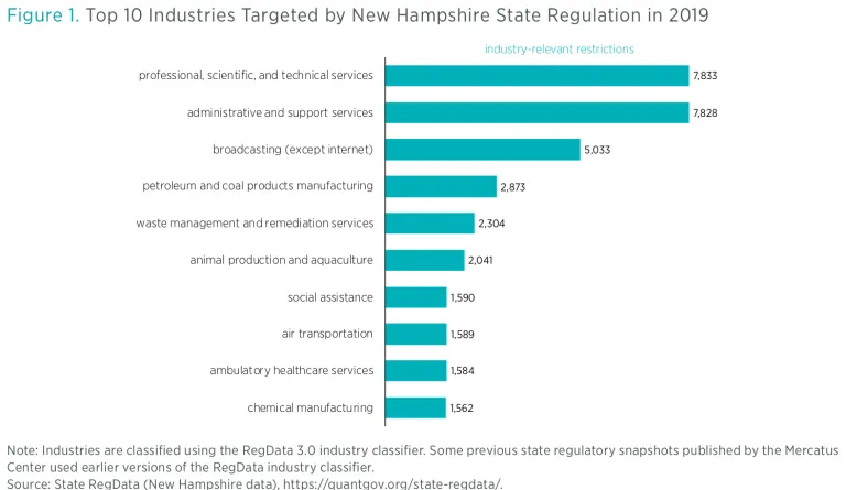 Researchers are only beginning to understand the consequences of the massive and growing federal regulatory system on economic growth and well-being in the United States. Meanwhile, the effects of state regulation remain largely unknown. If this snapshot of New Hampshire regulation in 2019 is a good indicator, then the states are also active regulators, suggesting that the full impact of regulation on society is far greater than that of federal regulation alone.