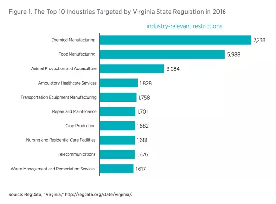 If this snapshot of Virginia regulation in 2016 is a good indicator, then the states are also active regulators, suggesting the true impact of regulation on society is far greater than that of federal regulation alone.