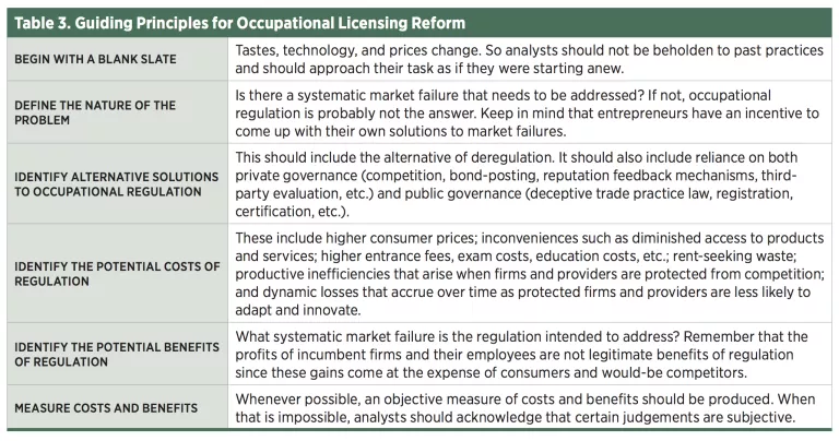 Policymakers wishing to reduce the social costs of their state’s occupational licensing could take the following steps: