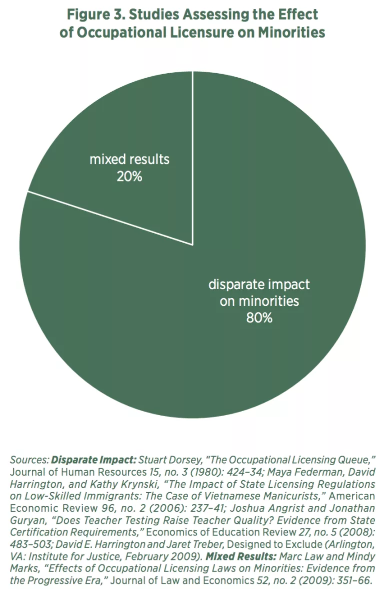 As shown in figure 3, McLaughlin, Ellig, and Shamoun’s survey of the literature shows that licensing was found to disparately affect ethnic minorities in four of five studies.