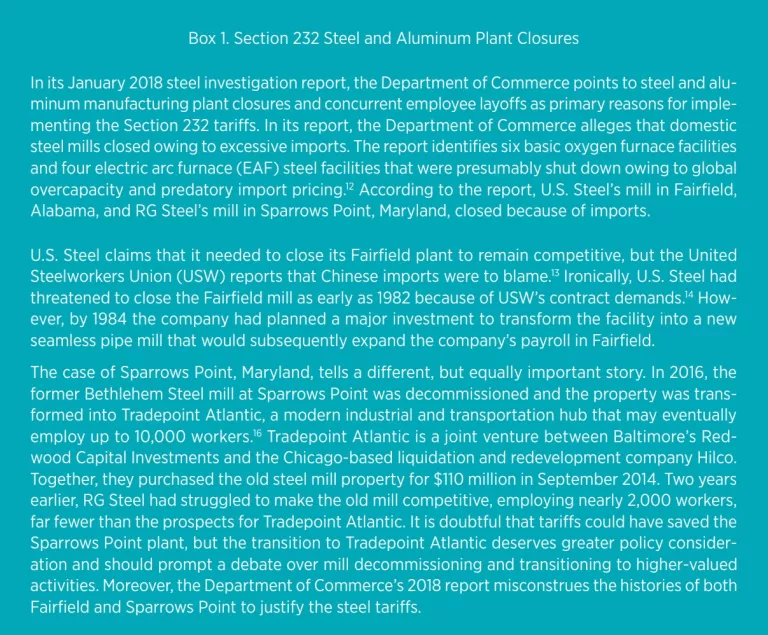 The Trump administration was eager to protect US steel and aluminum producers from imports, but it was, for three main reasons, unprepared to concurrently plan and implement a tariff exclusion process that addressed downstream industry concerns. First, the planning of the exclusion process did not include a comprehensive analysis of domestic steel and aluminum production and imports to determine whether specific product categories could be generally excluded from the tariffs, and it did not investigate the reasons behind recent steel and aluminum plant closures (see box 1).