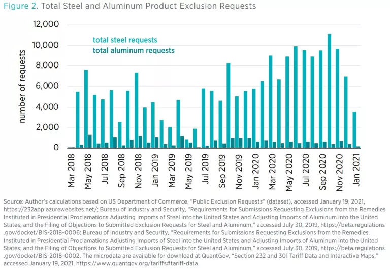Overall, the December 2020 rule changes constitute incremental improvements to a deeply flawed trade policy. Although the rule alterations reflect the Department of Commerce’s efforts to contend with a broad range of competing complaints, they also highlight the complexity of administering a poorly conceived policy that erects a tall tariff wall on a full range of steel and aluminum products that are essential to US manufacturing. Whereas the exclusion process, including the recently established GAEs, offers relief to select firms, the tariffs continue to reduce the overall competitiveness of US manufactured exports.