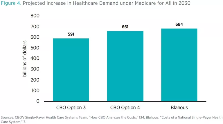 My 2018 study identifies my lower-bound cost estimate as an unlikely result and finds that actual costs under M4A would likely be substantially higher. CBO’s analysis provides a basis for stating that expectation more firmly. It does not seem plausible that Americans would accept the enormous new tax burdens associated with M4A only to see their resulting increased demand for healthcare services go almost entirely unmet. CBO’s analysis of the constraints on healthcare supply helps policymakers to understand more clearly why my lower-bound projection (and CBO’s Option 3) are almost certainly unrealistically low-cost estimates and why M4A would in practice cost far more.