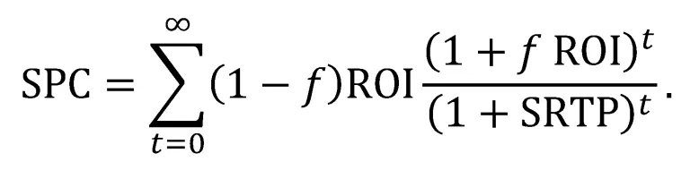 This states that the SPC is equal to the return on investment (ROI), which is the marginal social rate of return to capital net of depreciation, divided by the social rate of time preference (SRTP).