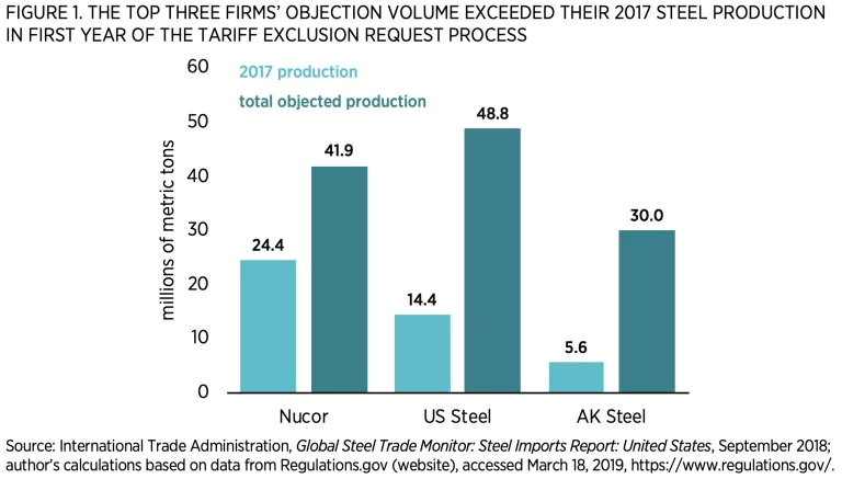 In April 2019, I reported that in the first 12 months since Section 232 tariffs were established and their accompanying exclusion process went into effect, US steel companies objected to 149.7 million metric tons (mmt) of steel imports, which was 183 percent of their total production of 81.6 mmt in 2017 (the year before the tariffs went into effect).