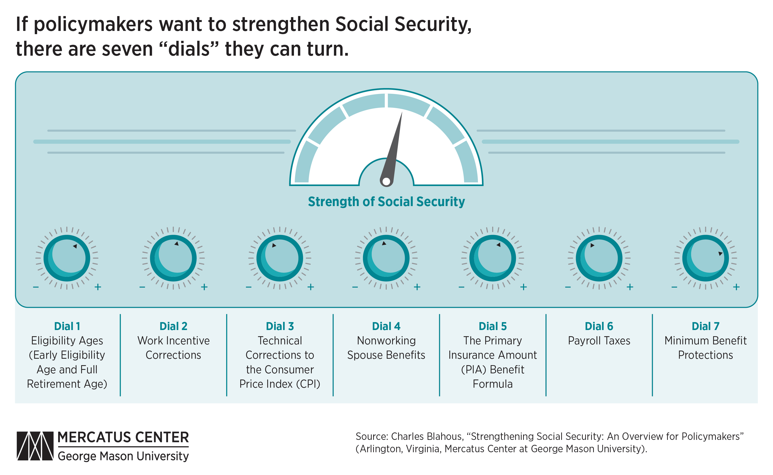 In “An Analytical Framework for Strengthening Social Security,” Charles P. Blahous explains a number of problems facing Social Security and how they can be addressed. While it is likely that any bipartisan agreement to achieve sustainable solvency will include a blend of eligibility age changes, revenue increases, and moderation of benefit growth rates, certain prudent reforms that would slow the growth of system costs would not only make it easier to finance Social Security, but they would also improve prospects for treating younger generations fairly, for improving workforce participation and savings incentives, and for better targeting program resources on households of greatest need.