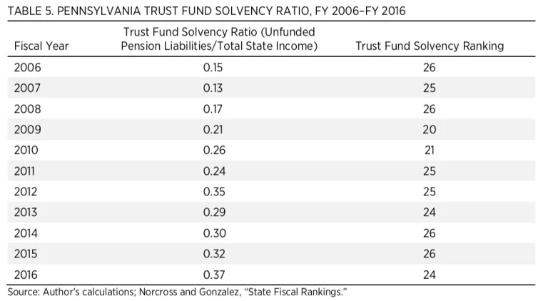 Trust Fund Solvency: Unfunded Pension Liabilities as Percentage of State Income