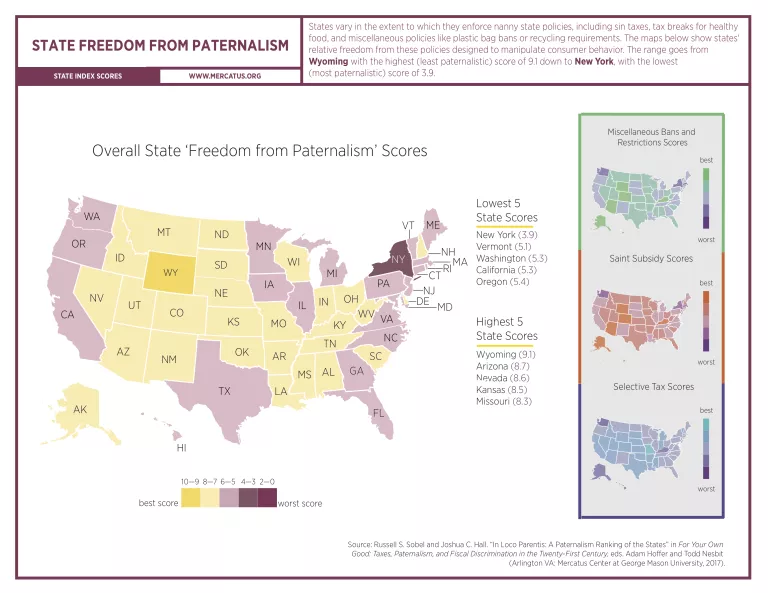 - Wyoming has the most freedom from paternalism, while New York is the most paternalistic state.